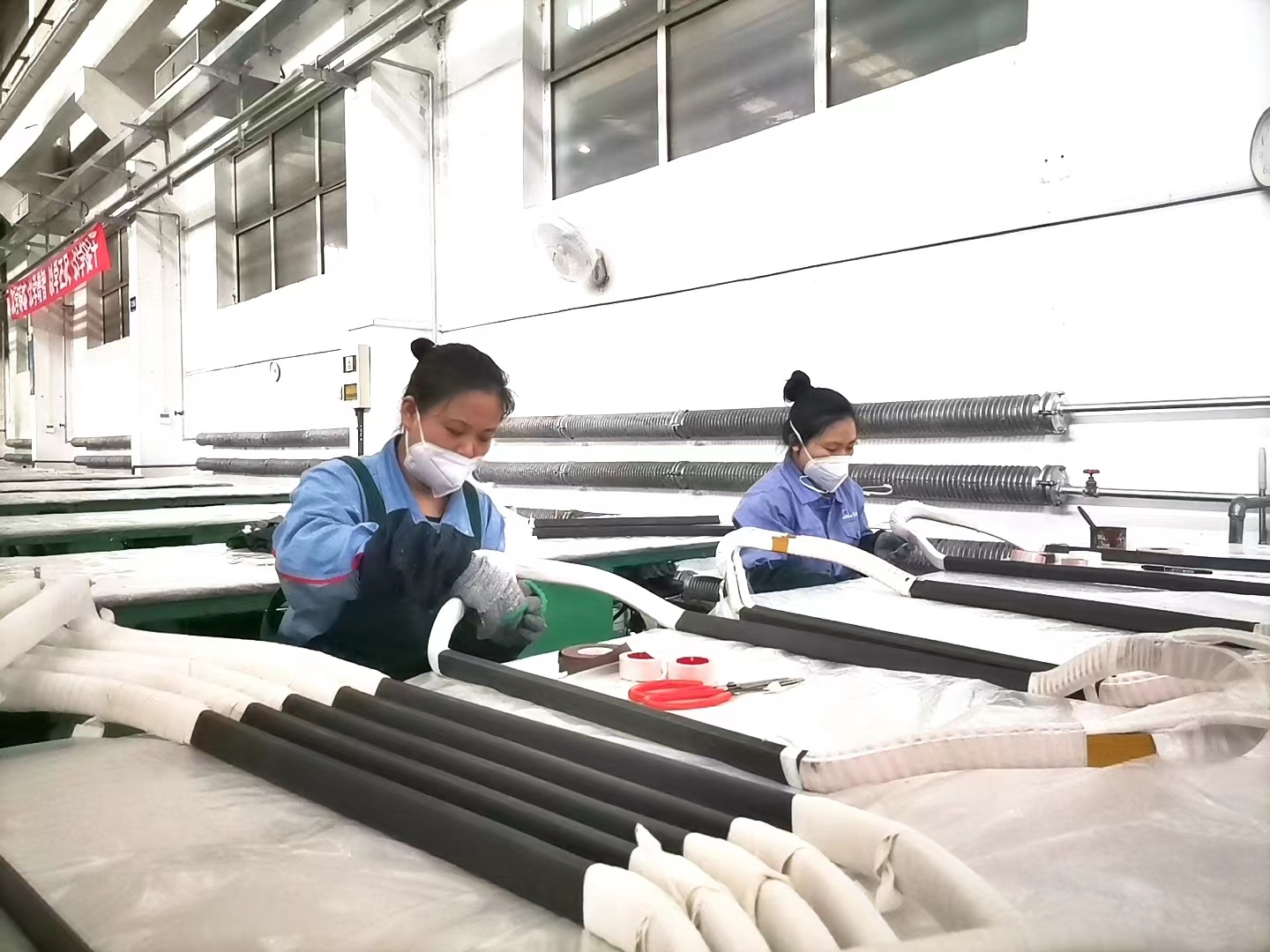 中秋節當天,早晨8點,電工車間二棟現場,一對姐妹花早早便進入了工作狀態,何紅竹和劉雪松是電工車間端部組的核心骨干員工。她們手里正在包扎絕緣的產品正是假期過后馬上便要交貨的重點產品,為了追趕生產進度,兩人主動放棄了假期,一早便來到工作現場,投入到緊張的工作中。“現在時間緊、任務重,我們一定會盡全力將這幾臺產品的生產進度追趕上,希望可以為公司發展盡一些綿薄之力。”樸素的話語,燦爛的笑容,她們用堅守詮釋了“歡慶”,用行動書寫了“熱愛”。