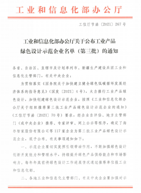 2020-2022年獲國家綠色產品設計目錄