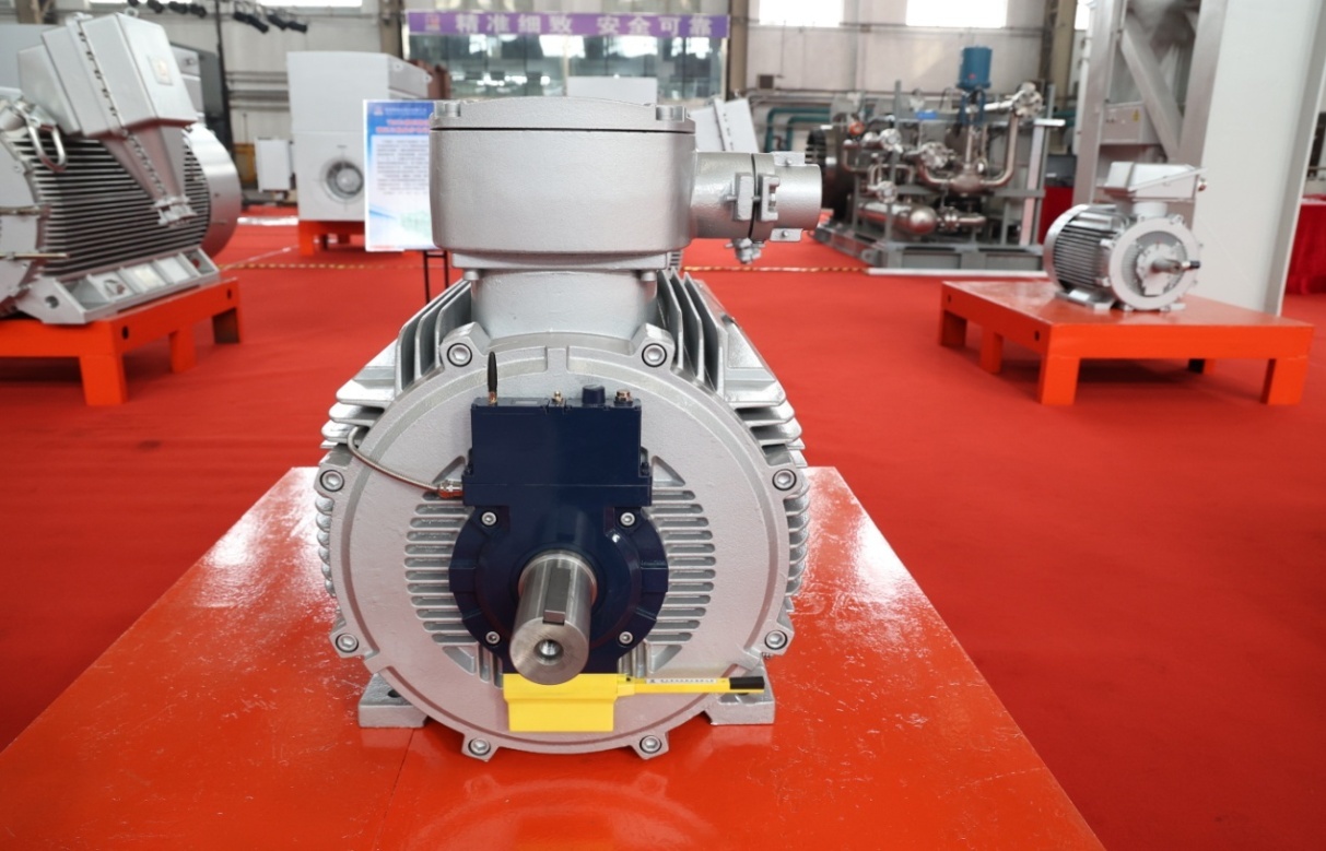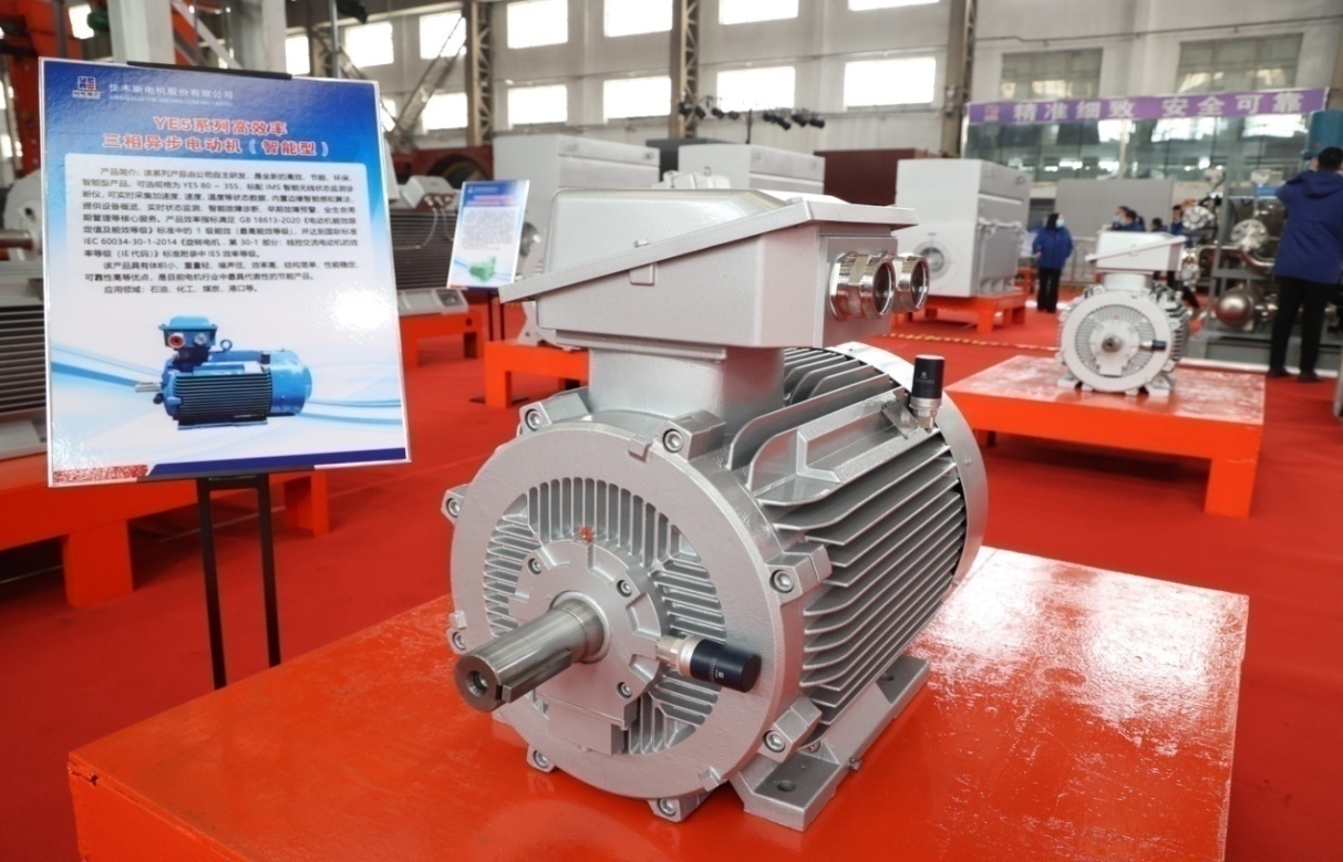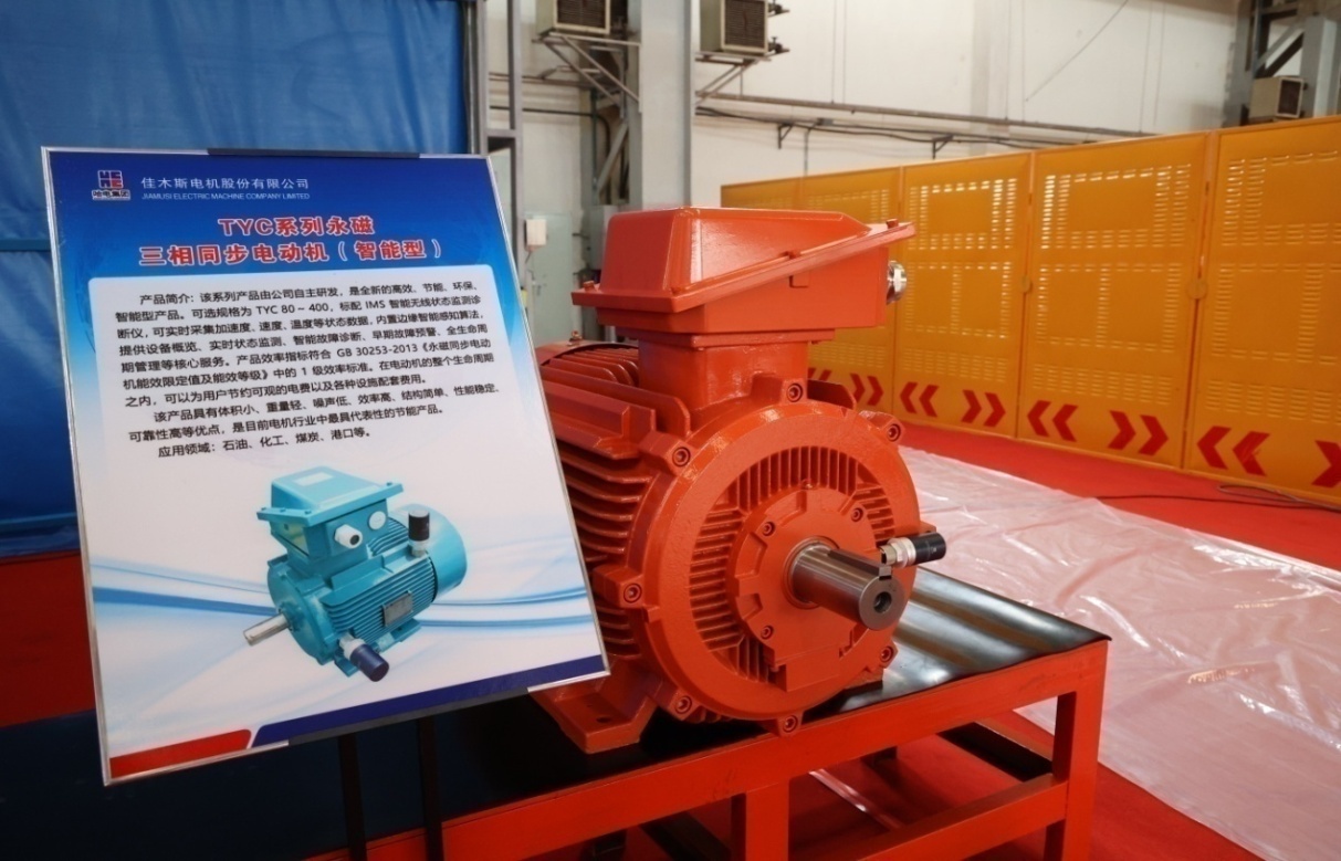 本次發布會展出的TBYC系列高效率隔爆型永磁三相同步電動機(智能型)、TYC系列永磁三相同步電動機(智能型)產品,依靠永磁體所提供的磁能替代了傳統電機電勵磁產生的磁能,具備電機損耗低、運行可靠性高的特點。在負載較低時,產品仍可保持較高的運行效率和功率因數,解決了機械設備在低負荷時能耗消耗大的問題。其中部分規格可配備智能監測終端產品,可實時采集加速度、速度、溫度等狀態數據,內置邊緣智能感知算法,可提供設備概覽、實時狀態監測、智能故障診斷、早期故障預警、全生命周期管理等核心服務。同時,產品效率指標能夠滿足1級能效要求,在電動機的整個生命周期內,可以為用戶節約可觀的電費以及各種設施配套費用,是工信部“能效之星”推薦產品,可應用于石油化工、電力系統、紡織、工礦企業以及拖動風機、泵類等機械。