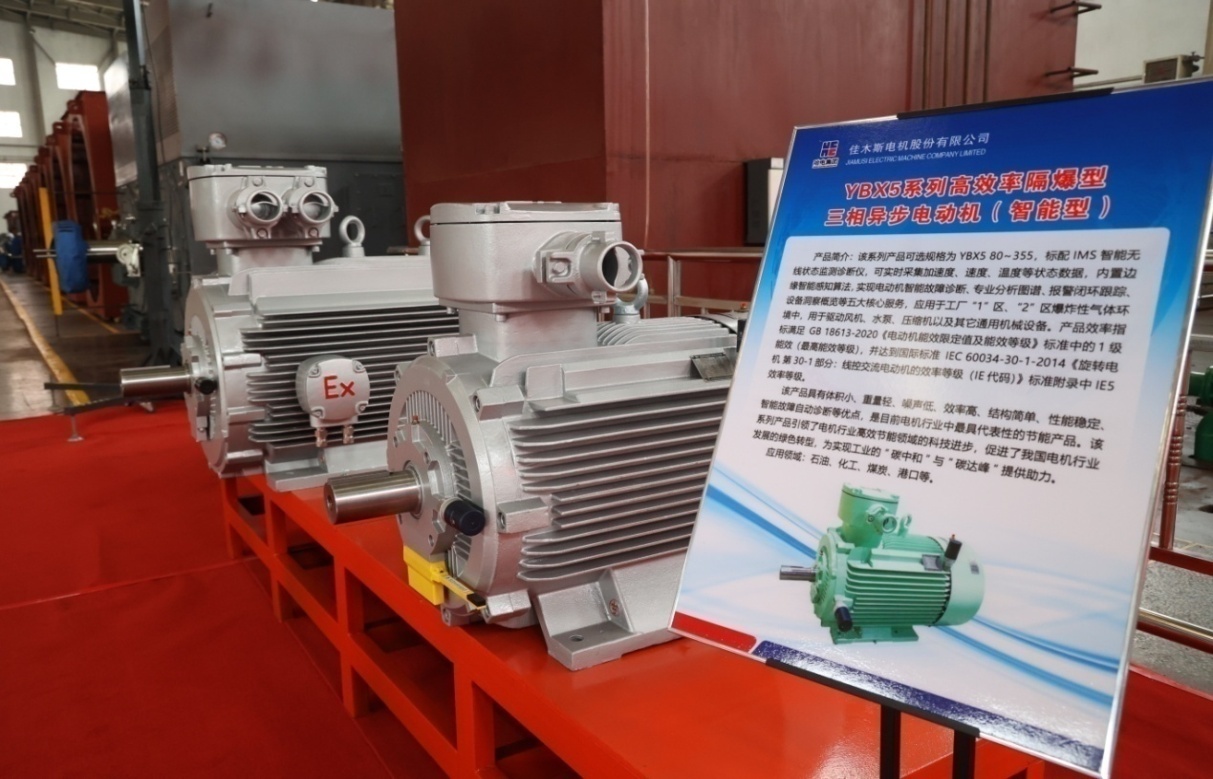 佳電股份智能高效電動機涵蓋YE5、YBX5、YBX3、YJKK/YJKS、YXKK/YXKS、YBF等高、低壓系列。智能高效電動機配備智能監測終端產品,可實時采集加速度、速度、溫度等狀態數據,內置邊緣智能感知算法,可提供設備概覽、實時狀態監測、智能故障診斷、早期故障預警、全生命周期管理等核心服務。同時,產品效率指標能夠滿足1級能效要求。其中,YE5/YBX5系列高效率三相異步電動機(智能型)具有體積小、重量輕、噪聲低、效率高、可靠性高等優點,是目前電機行業中最具代表性的節能產品;YBX3系列高效率隔爆型高壓三相異步電動機(智能型)具有結構緊湊、效率高、噪聲低、振動小、可靠性高、安裝維護方便且具備智能故障自動診斷等優點,其設計、制造、檢驗和試驗既符合國家的相關標準,又符合IEC標準的相關規定,可完全替代進口電機,性能參數達到同行業領先水平;YXKK系列高壓三相異步電動機(智能型)能夠滿足GB/30254-2013中的2級能效要求,性能指標達到國內領先,國際先進水平,具有振動小,噪聲低,安裝維護方便等特點;YJKK系列高效率高壓三相異步電動機(智能型)是YXKK系列的升級產品,該產品優化了結構要素和性能要素,提升了換熱效率、提高了功率密度,降低了單機重量和材料用量,性能指標實現了最優配置,其綜合性能指標達到國際先進水平,可完全實現進口電動機國產化,促進了我國高壓箱式電機技術的快速發展;YBF系列高效風機用高壓隔爆型三相異步電動機(智能型),采用載荷更大重載系列軸承,可承受較大軸向、徑向負荷,可用于煤礦通風設備。