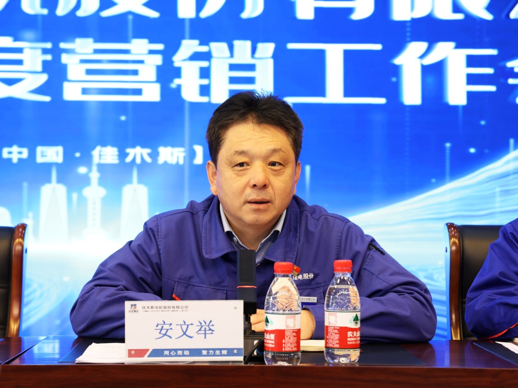 佳電股份副總經(jīng)理安文舉針對(duì)2023年?duì)I銷(xiāo)工作指出重點(diǎn),鼓勵(lì)大家忠于企業(yè),履職盡責(zé),與企業(yè)同呼吸共命運(yùn),團(tuán)結(jié)一心同發(fā)展,并希望全體營(yíng)銷(xiāo)人員能夠真正從以往工作中汲取經(jīng)驗(yàn),改進(jìn)不足,找準(zhǔn)工作方向,高質(zhì)量完成營(yíng)銷(xiāo)任務(wù)。