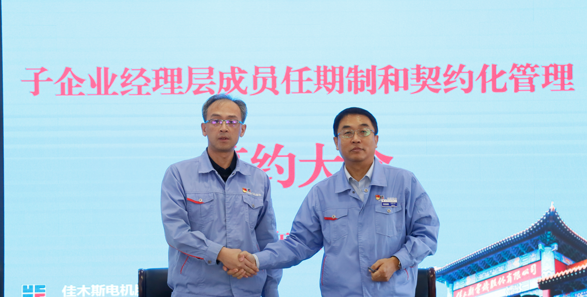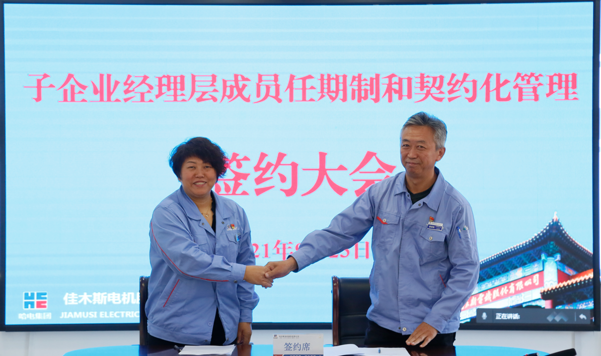 為深入落實國企改革三年行動方案,貫徹哈電集團(tuán)關(guān)于子企業(yè)推行經(jīng)理層成員任期和契約化管理工作部署,確保“十四五”目標(biāo)任務(wù)落實落地。9月23日,佳電股份子企業(yè)經(jīng)理層成員任期制和契約化管理簽約大會在佳木斯、哈爾濱、蘇州和成都以視頻形式舉行。佳電股份董事長、黨委書記劉清勇出席會議并講話。佳電公司、成都佳電、蘇州佳電、吉林佳電、運維科技五家子企業(yè)經(jīng)理層成員分別簽署了《崗位聘任協(xié)議書》和《經(jīng)營業(yè)績責(zé)任書》。