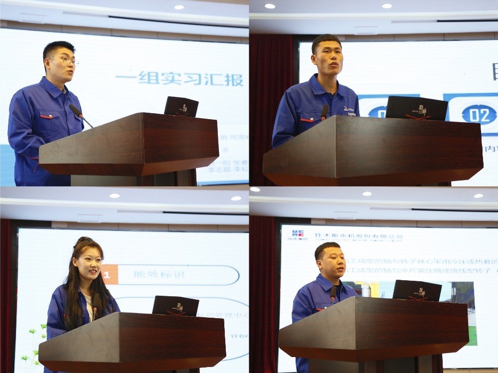 30位新入職大學生分為四個小組,通過PPT講解、視頻展示等方式,圍繞實習工作情況、存在問題、實習感悟、未來展望等方面,依次匯報了小組及個人在生產車間、財務部門、法務部門、銷售公司等崗位實習的學習成果,分享了自己在實習工作中的感受與經驗,并對工作中發現的問題提出了合理化建議,同時對今后的工作做出了具體規劃。匯報中,新入職大學生向導師們的諄諄指導表示感謝,同時也感謝公司給予的良好成長平臺。