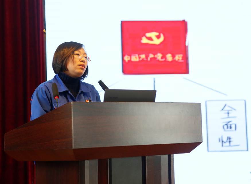 作為“理論學習大講堂”第一期講座,質量保障部黨支部書記張飛飛結合自己學習《黨章》的體會,由淺入深,細致生動,從“黨章的地位、作用及發展歷程”“總綱解讀”“黨員、干部、紀律”“黨的組織制度及組織機構”四方面對《黨章》的重要章節作了認真深入的解讀。精彩的講述,贏得現場聽眾陣陣掌聲。