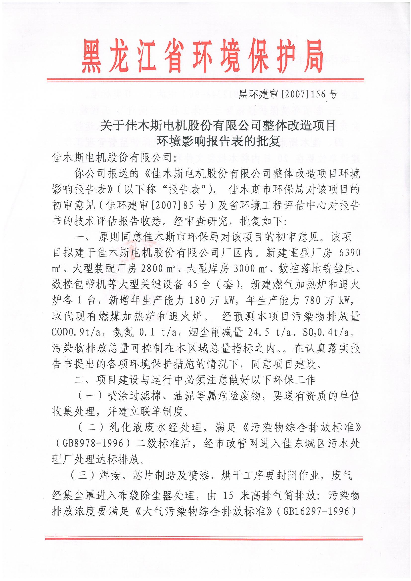 按照佳木斯市環保局關于企業環境信息公開的要求,現將佳電股份公司涉及相關的環境信息進行公開:
