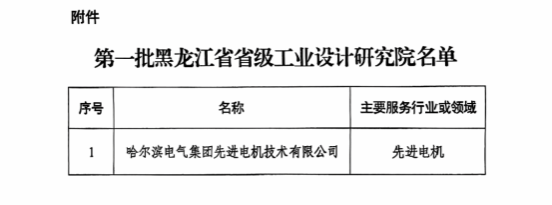 近日,黑龍江省工業和信息化廳公布了第一批省級工業設計研究院名單,哈電集團佳電股份旗下先進電機公司成功入選,成為全省首批首家獲此認定的企業,標志著哈電集團佳電股份在工業設計領域的探索邁上新臺階。