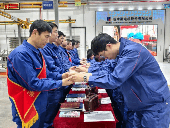 為全面貫徹落實黨的二十大和二十屆歷次全會精神,貫徹落實習近平總書記關于產業工人隊伍建設改革的重要指示精神,大力弘揚“勞模精神、勞動精神、工匠精神”,加快人才隊伍建設,近日,哈電集團佳木斯電機股份有限公司(以下簡稱“佳電股份”)組織開展“名師帶高徒”第四屆工作總結表彰暨第五屆拜師儀式。活動以“傳薪火、育匠心、促成長”為主線,通過表彰先進典型、締結新批師徒,在全公司范圍內掀起“比學趕超、薪火相傳”的熱潮,持續為公司高質量發展注入強勁人才動能。