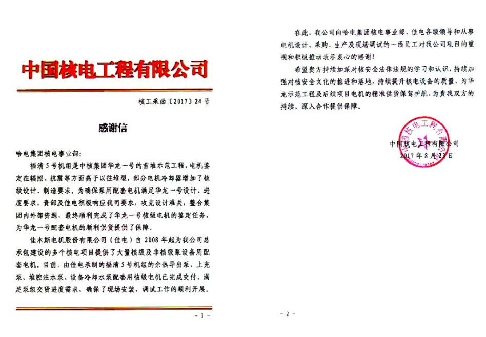 2021年1月30日,伴隨著全球第一臺“華龍一號”核電機組——中核集團福建福清核電站5號機組投入商業運行,標志著我國三代核電技術領域躋身世界前列。 作為我國第一家取得國家核安全局頒發的1E級電機設計、制造許可證單位,...