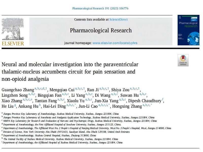 Pharmacological Research:徐州醫(yī)科大學(xué)張紅星課題組揭示了丘腦室旁核至伏隔核的神經(jīng)回路在疼痛感知和非阿片類鎮(zhèn)痛中的作用