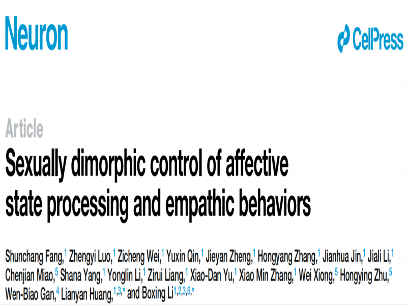 Neuron:中山大學(xué)李勃興/黃瀲滟團隊揭示調(diào)控雌雄小鼠同情行為性別差異性的神經(jīng)環(huán)路