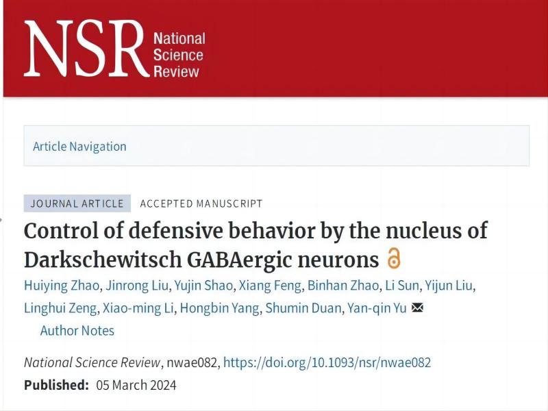 NSR:浙江大學(xué)虞燕琴/段樹民/楊鴻斌課題組揭示調(diào)控恐懼防御行為的新神經(jīng)環(huán)路機制