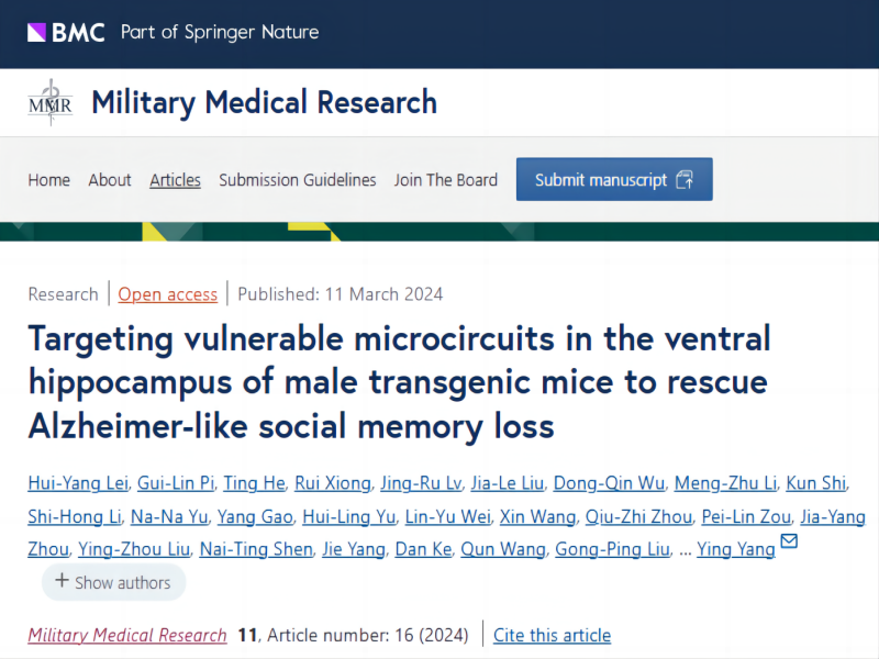 MMR論著|華中科技大學(xué)楊瑩/王建枝教授課題組揭示腹側(cè)海馬微環(huán)路對阿爾茨海默病樣tau聚積高度易感并介導(dǎo)社交記憶障礙