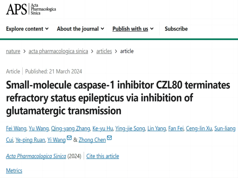 APS:浙中醫(yī)大陳忠/汪儀團隊揭示Caspase-1抑制劑CZL80對耐藥性癲癇持續(xù)狀態(tài)的作用及機制