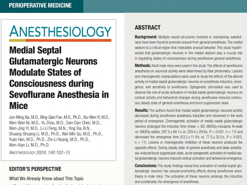 Anesthesiology | 李文獻/韓園課題組揭示全麻藥物的神經(jīng)調(diào)控新機制