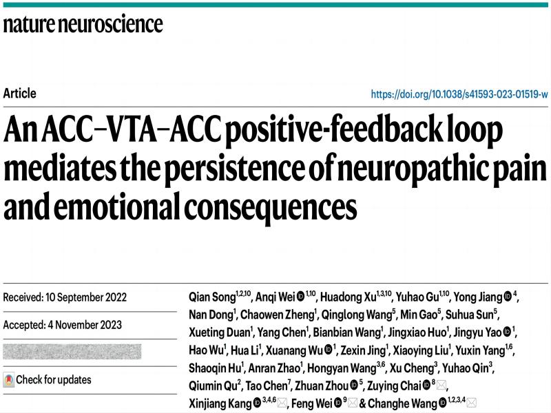 Nature Neuroscience:西安交通大學王昌河團隊揭示慢性疼痛和情感障礙共患的ACC-VTA-ACC正反饋循環(huán)神經(jīng)環(huán)路