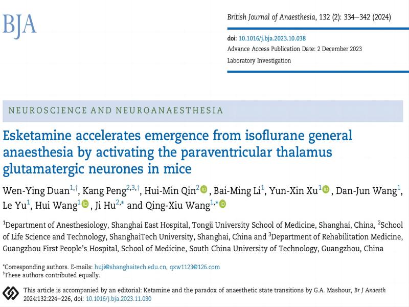 BJA:麻醉藥居然促覺醒?胡霽/王清秀團隊合作發(fā)現(xiàn)艾司氯胺酮參與全身麻醉的新機制