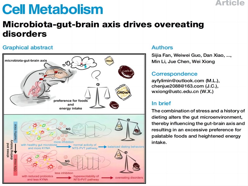 Cell Metabolism:中國科技大學(xué)熊偉發(fā)現(xiàn)暴飲暴食的腦腸軸機(jī)制