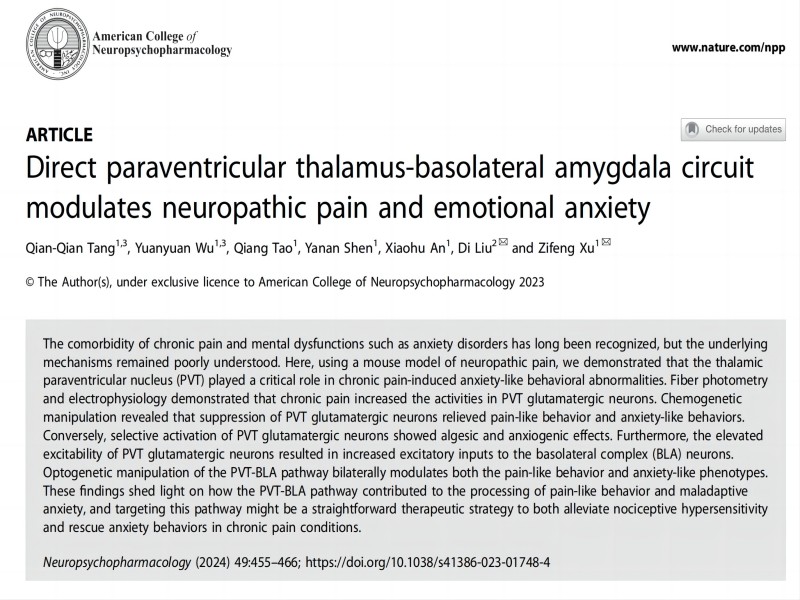 Neuropsychopharmacology:徐子峰發(fā)現(xiàn)慢性疼痛焦慮新靶點(diǎn)