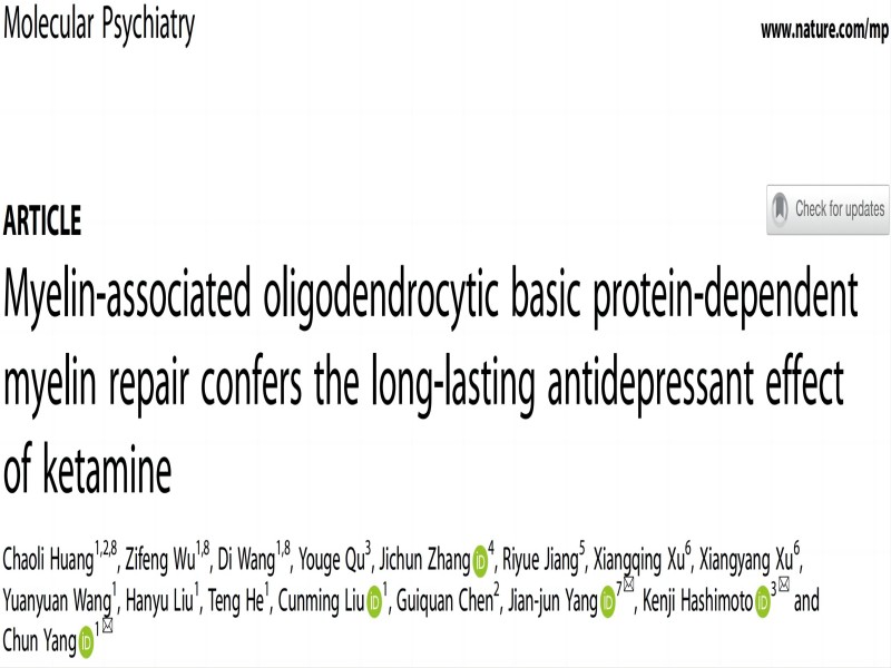 Molecular Psychiatry:楊春發(fā)現(xiàn)氯胺酮抗抑郁新機(jī)制