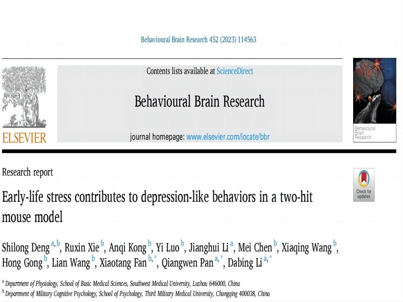 Behavioural Brain Research:西南醫(yī)科大學(xué)李達(dá)兵發(fā)現(xiàn)早期的壓力導(dǎo)致焦慮與抑郁