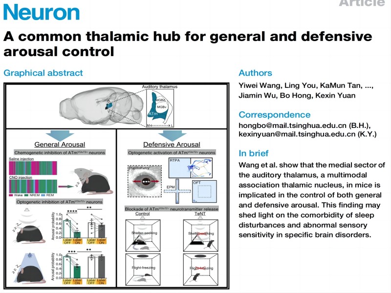 Neuron | 清華大學(xué)苑克鑫/洪波發(fā)現(xiàn)負(fù)責(zé)一般性和防御性覺醒控制的通用丘腦樞紐