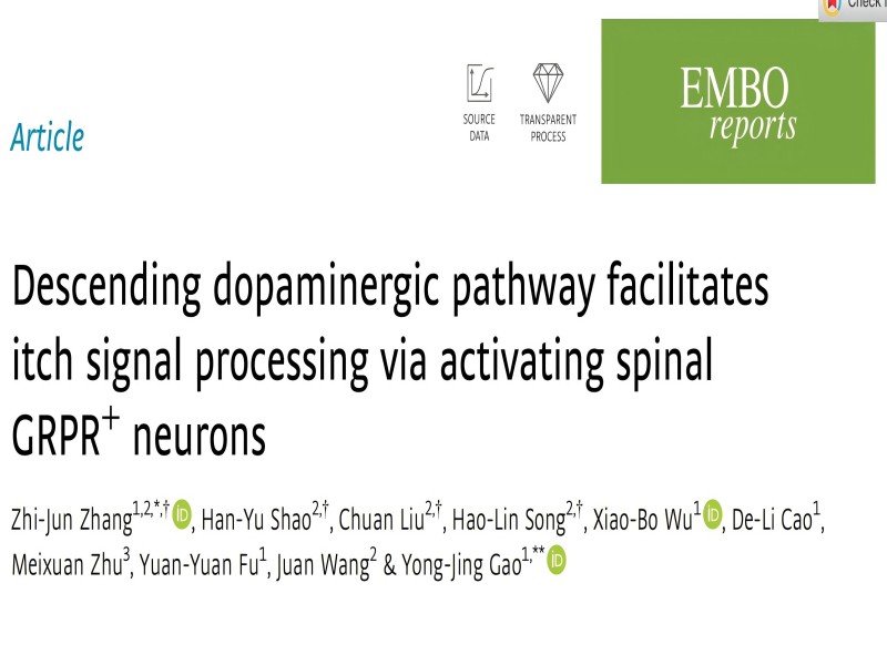 EMBO Reports︱南通大學(xué)高永靜/張志軍團(tuán)隊(duì)揭示脊髓多巴胺下行通路調(diào)控癢覺環(huán)路機(jī)制